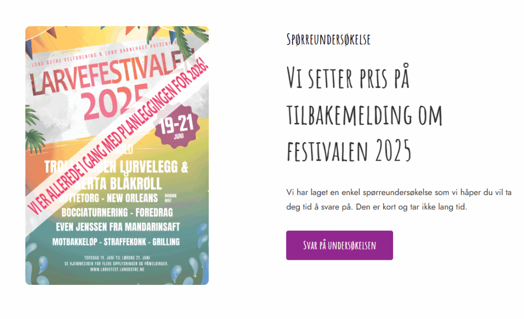 Vi er ferdige med årets Larvefestival og vi vil gjerne ha din tilbakemelding.
